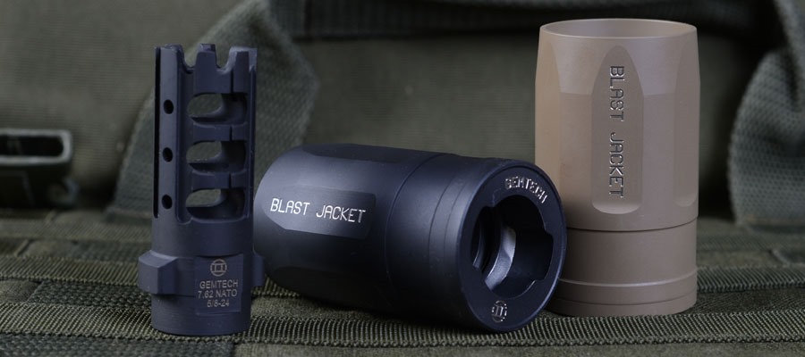 No, it’s not a suppressor, or a flash hider, nor is it a muzzle brake. It’s GEMTECH’s new Blast Jacket and it’s basically a cowling for your muzzle device. The Blast Jacket is designed to redirect muzzle blast from the sides forward and away from your team members. Ingenious is what I call it!