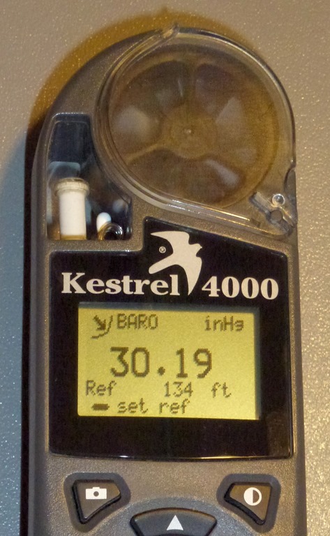 The picture on the left shows station pressure. Note that I’ve set the reference to 0. The picture of the right indicates barometric pressure. Note that the reference is set to my topographic elevation.