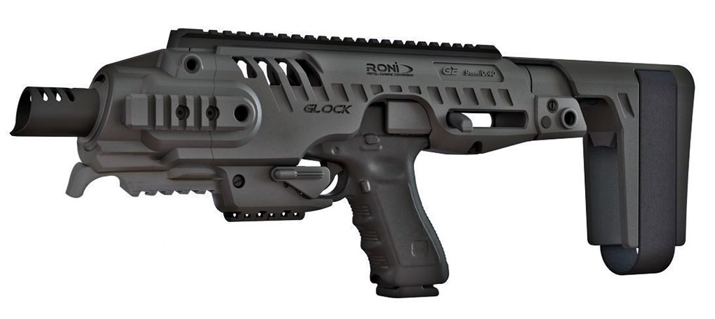 → No pistol disassembly required, just place firearm into pistol carbine chassis
