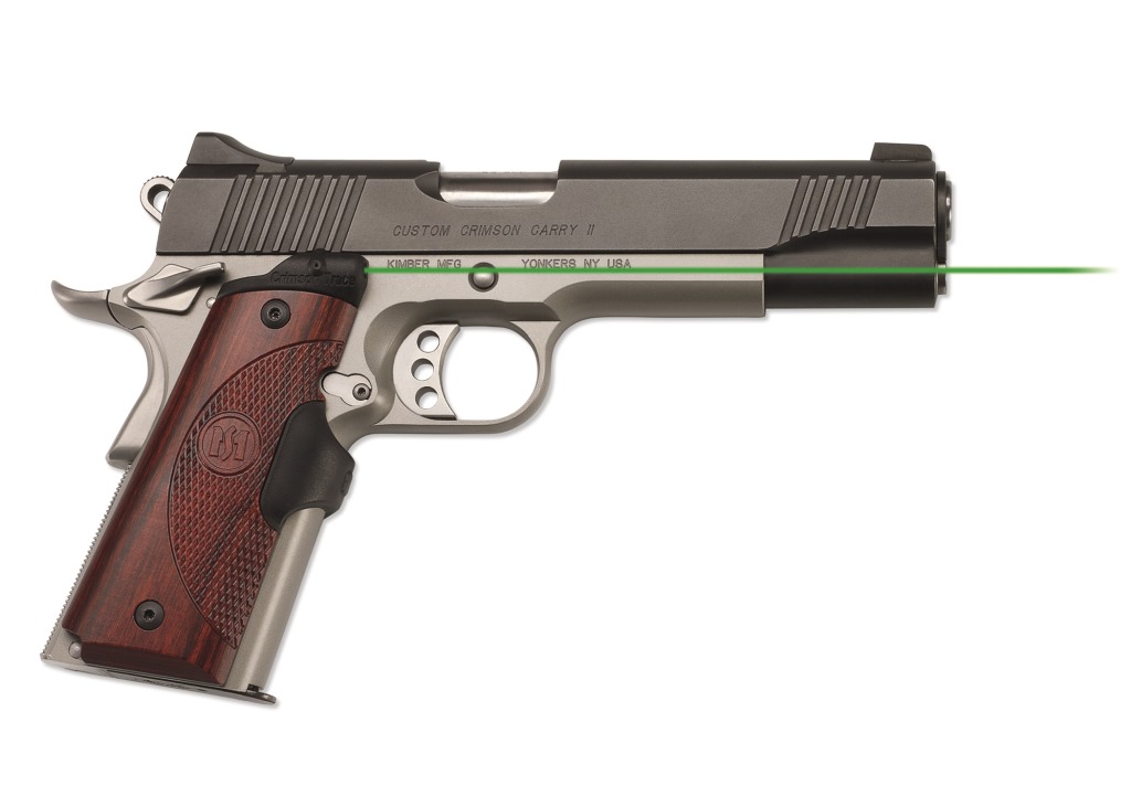 Lasergrips® laser sights by Crimson Trace are designed to be an upgrade to one of America’s most popular firearms—the iconic 1911 semi-auto pistol. Master Series laser sights are available in a wide range of designs, with a variety of woods or colors in durable G10 composite, and with brilliant red or green laser sights. The Wilsonville, Oregon-based manufacturer now offers more than a dozen options for Master Series Lasergrips with green laser diodes. Crimson Trace products deliver features that consumers prefer, including (depending on model):
