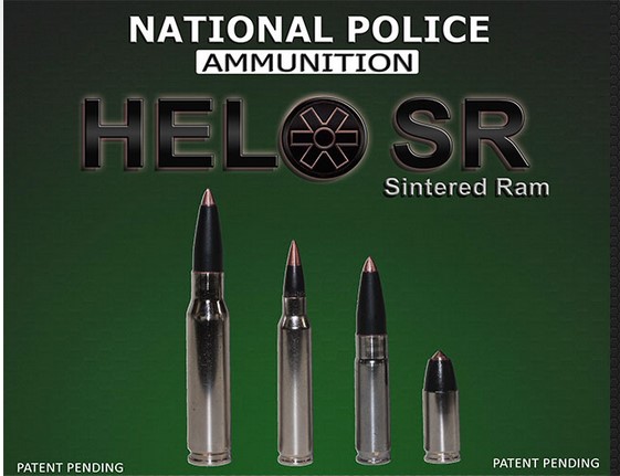 The HELO SR stands for; High Expansion Law Enforcement Ordnance, Sintered Ram and is a match grade monolithic solid copper hollow point projectile with a black oxide coating which improved feeding and mitigates barrel fouling utilizing a patent pending metal alloy sintered ballistic tip.