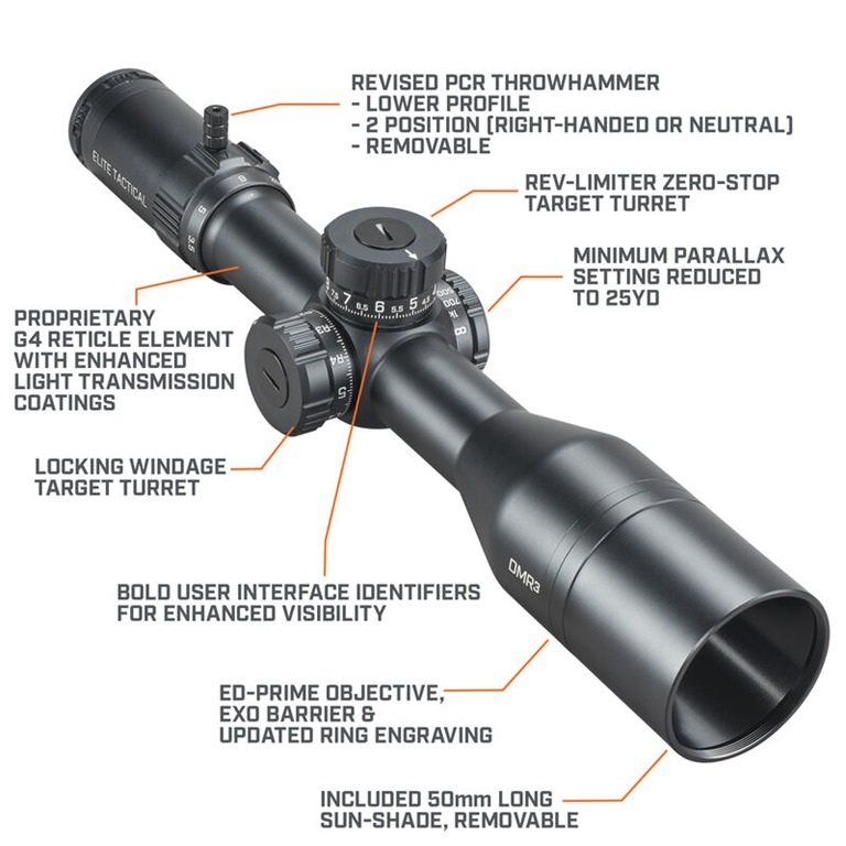 “The new Elite Tactical DMR3 is utterly reliable, tracks perfectly has a huge eye box and the field of view is everything you need,” said George Gardner, Founder of GA Precision and Team Captain for Elite Tactical. “With the etched glass and updated G4P reticle, it’s about as perfect as it can get. I have never had one fail me in a match.”