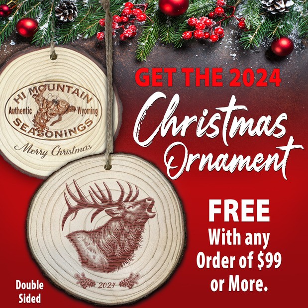 RIVERTON, Wyo. (Dec. 4, 2024) — The holiday season is upon us, and what better way to celebrate than with a unique gift that embodies the spirit of giving? Hi Mountain Seasonings is spreading the joy this Christmas in a special way. For every order over $99, customers will receive an exclusive Limited Edition ornament that’s not just a decoration but a piece of art. This beautifully crafted wooden ornament features an elk on one side and the Hi Mountain logo on the other, making it a delightful collectible for your holiday décor.