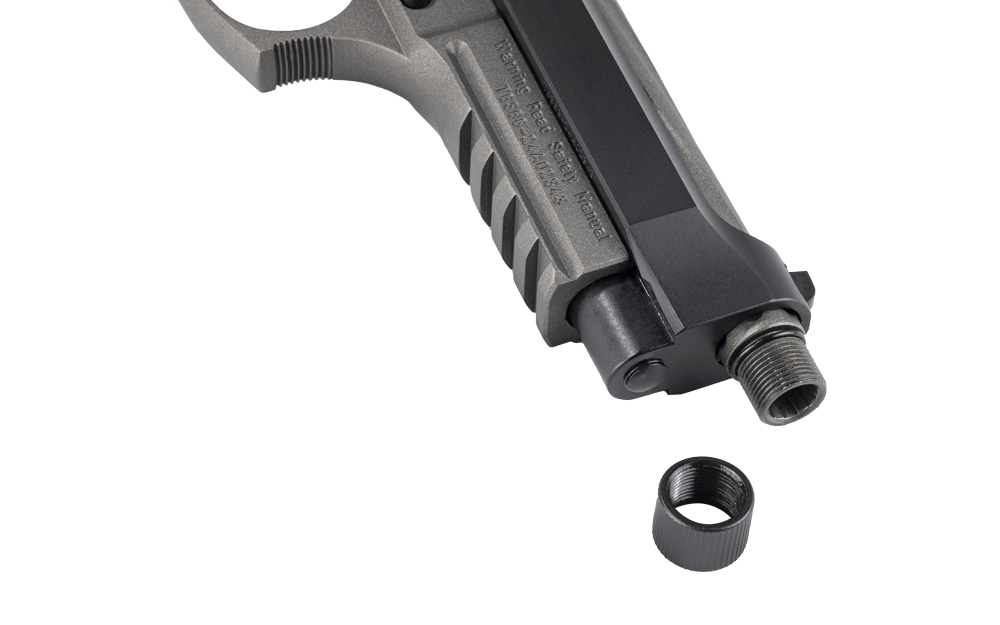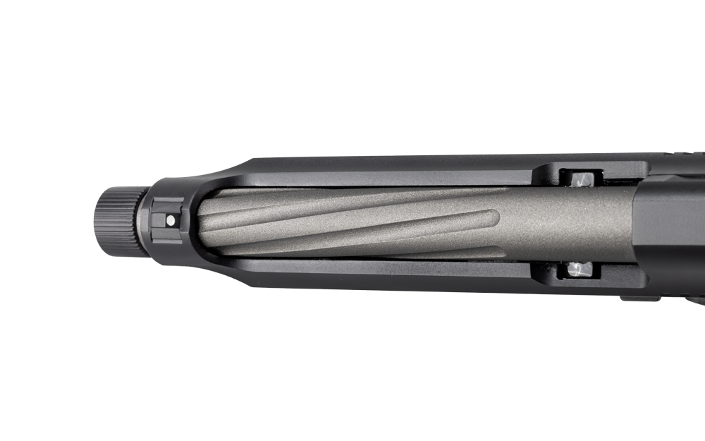 The Girsan Regard MC X (SKU: 390181) maintains its signature reliability, this time with a double twist – Featuring an extended spiral-fluted barrel that’s also threaded 1/2×28 for attaching muzzle devices. Aesthetically, the Regard MC X boasts a sleek two-tone black and grey tungsten Cerakote finish that offers a sharp look and scratch resistant protection.