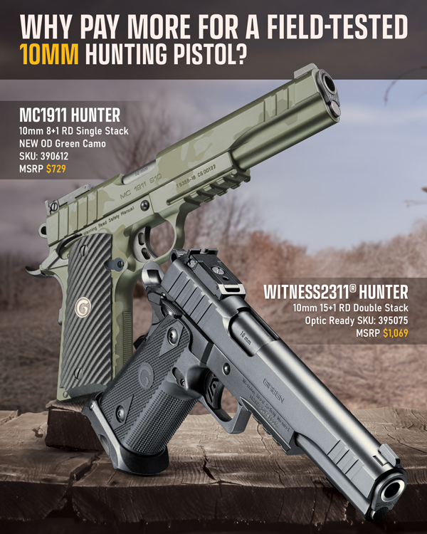 The Girsan Hunter Series by EAA offers exceptional features for pistol hunters. Available in 10mm, the Girsan Hunter delivers maximum firepower and accuracy in a single or double-stack configuration. Backed by EAA Limited Lifetime Warranty.