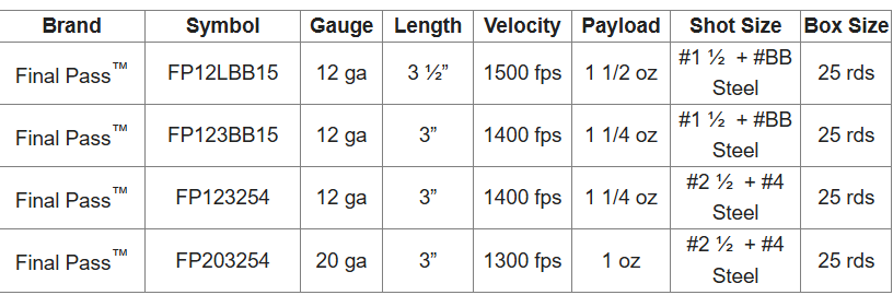 “Blended steel loads are extremely effective for waterfowl and provide an excellent combination of performance and affordability,” said Kyle Masinelli, Senior Director of Product Innovation and Strategy for Winchester. “The plated precision steel shot blended with custom half shot sizes makes Final Pass a versatile shotshell that waterfowl hunters can run all season whether chasing early season teal or late season geese.”