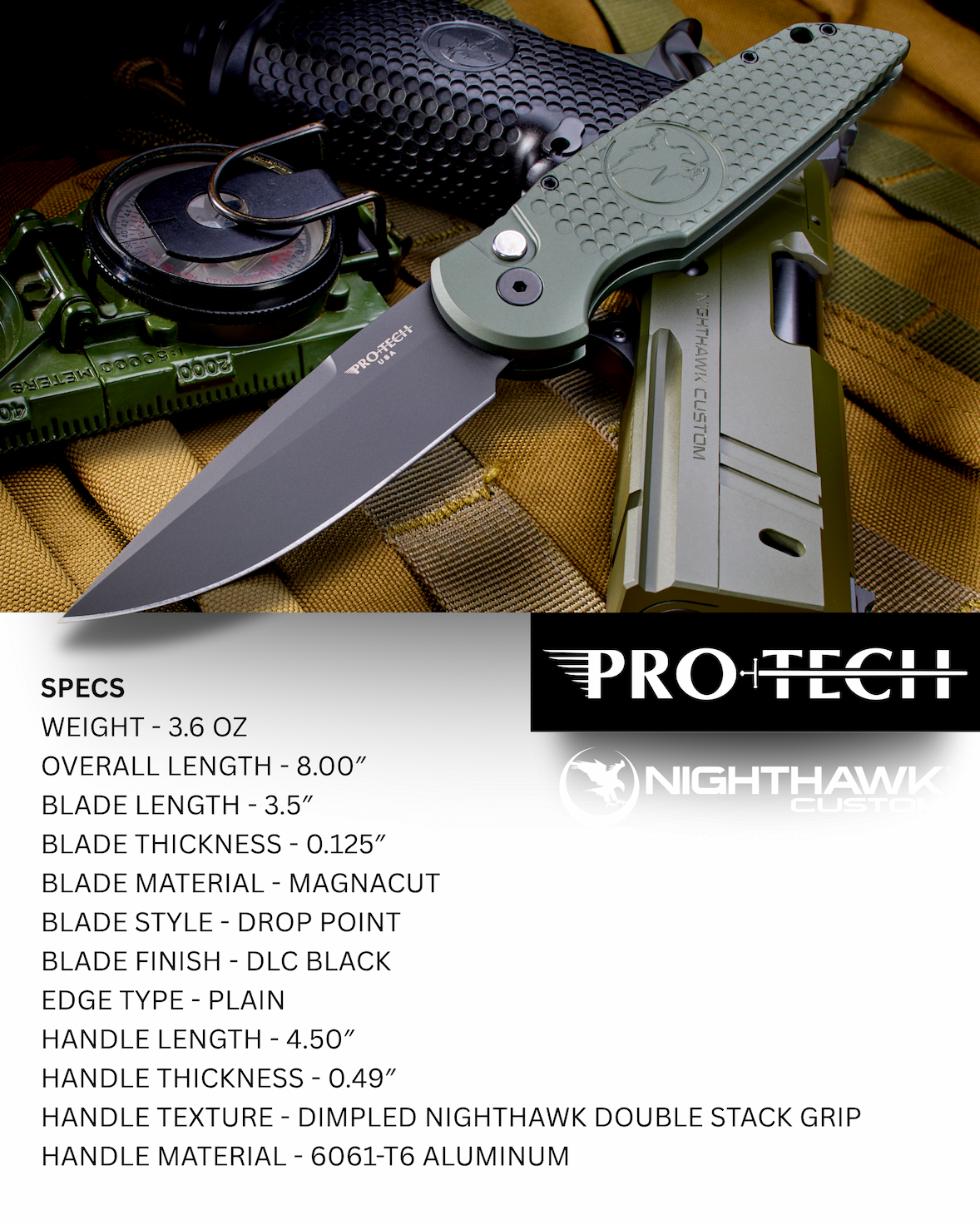 The Nighthawk Custom TR-3 by Pro-Tech has earned its reputation as a go-to automatic folder, trusted for its precision and rugged build. Now, this proven design returns with a bold new look: a double stack inspired anodized aluminum handle in OD Green.