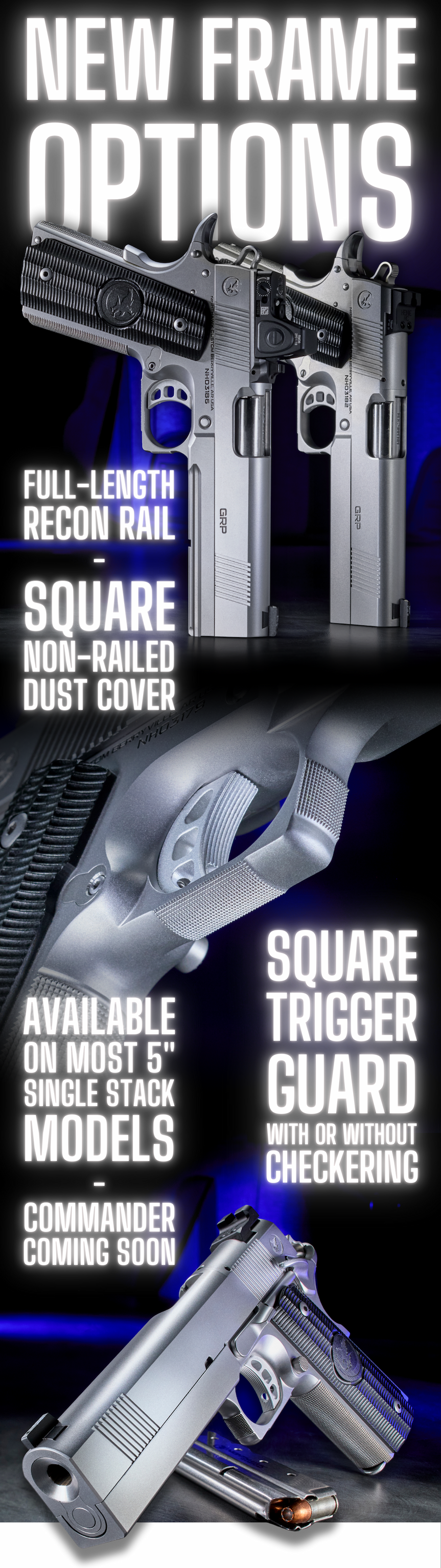 We’ve expanded our single-stack 1911 customization program with a series of new frame offerings—allowing customers to tailor their pistol’s profile and performance with greater precision than ever before.