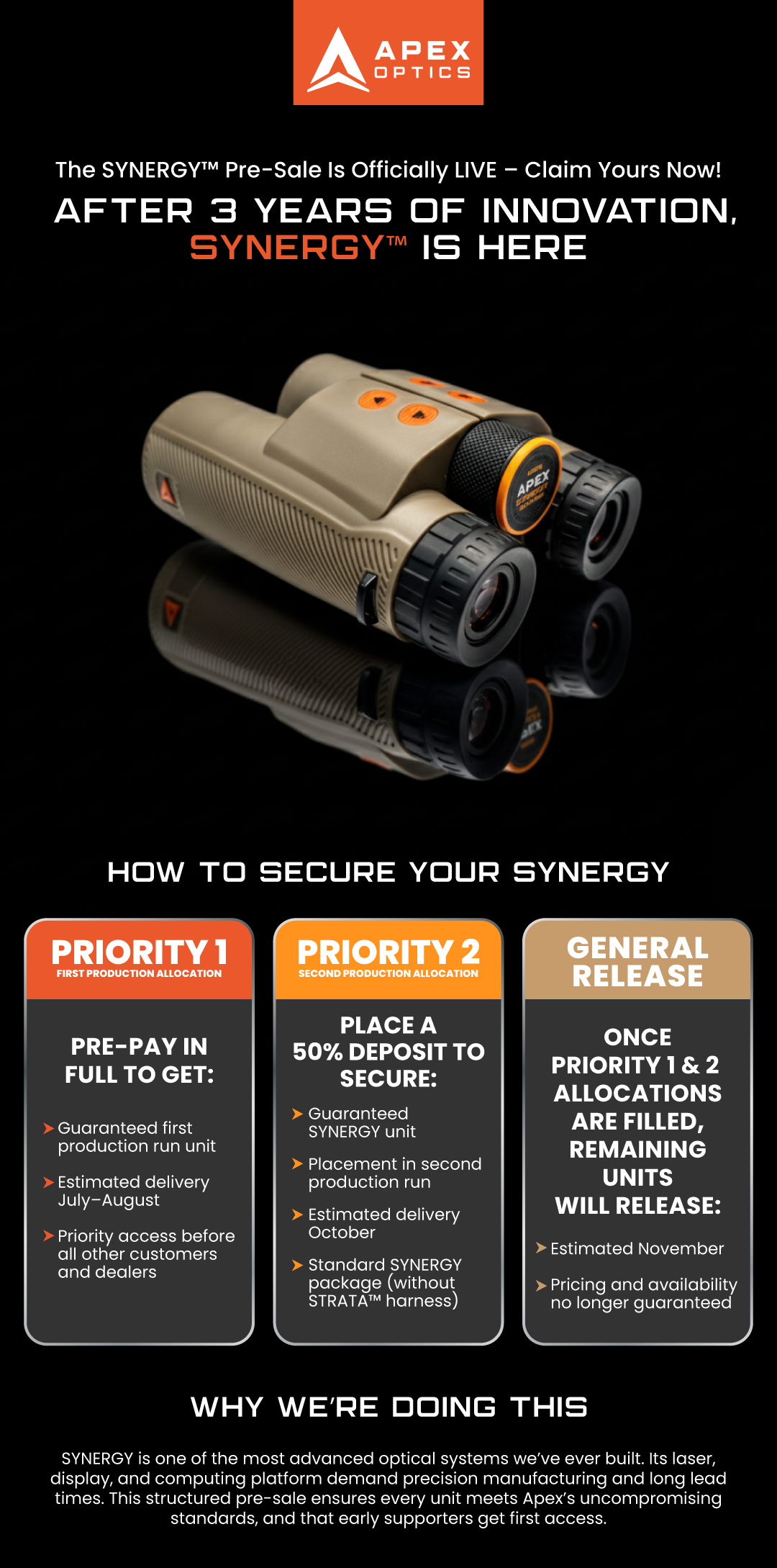 This entry was posted in Optics, Range Finder and tagged Apex Optics, Binoculars, Range Finder, SYNERGY. Bookmark the permalink.