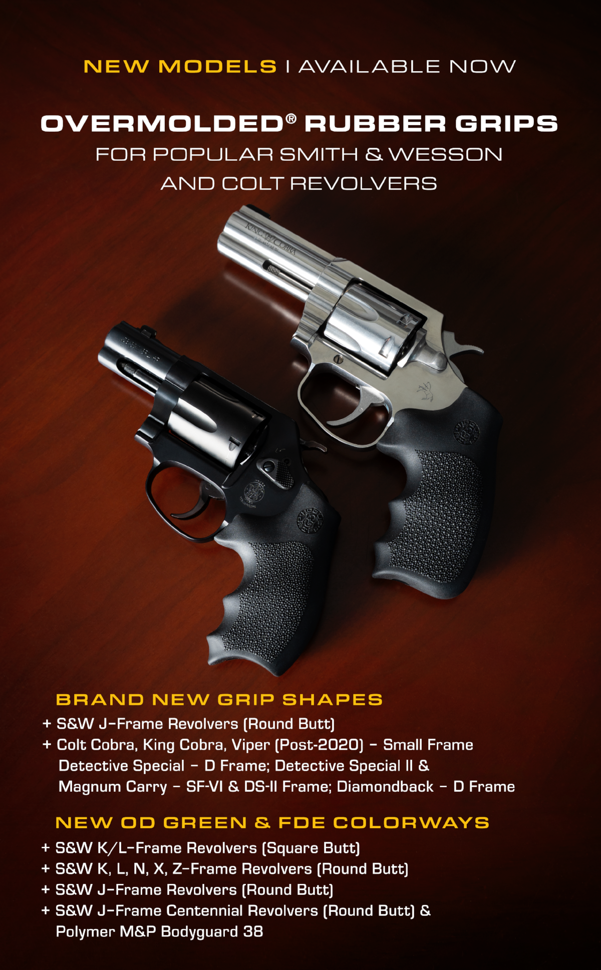 New Hogue Rubber Grip Models and Colors for Smith & Wesson and Colt Platforms