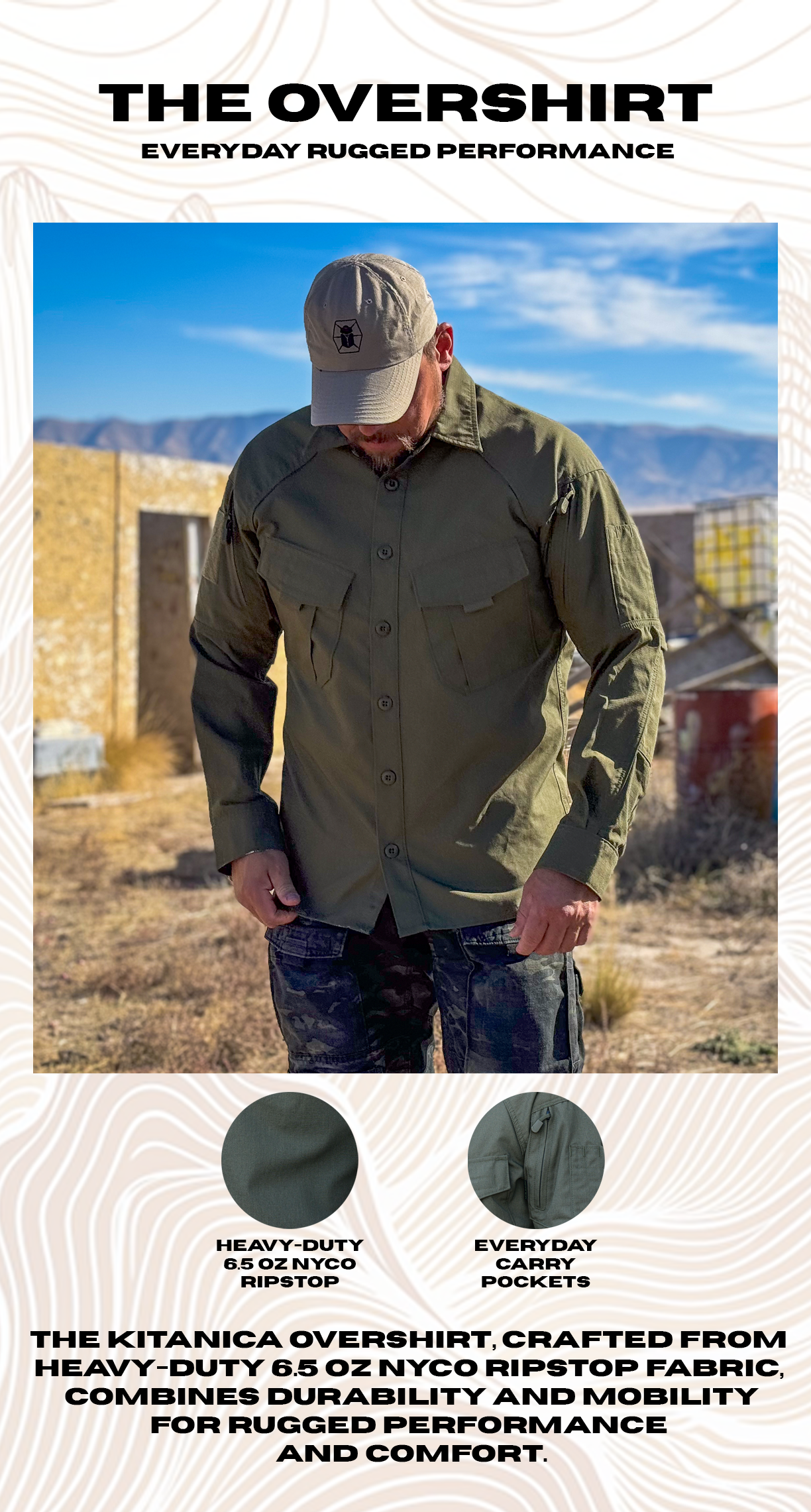 - Six pocket design (2 side, 2 rear, 2 cargo)